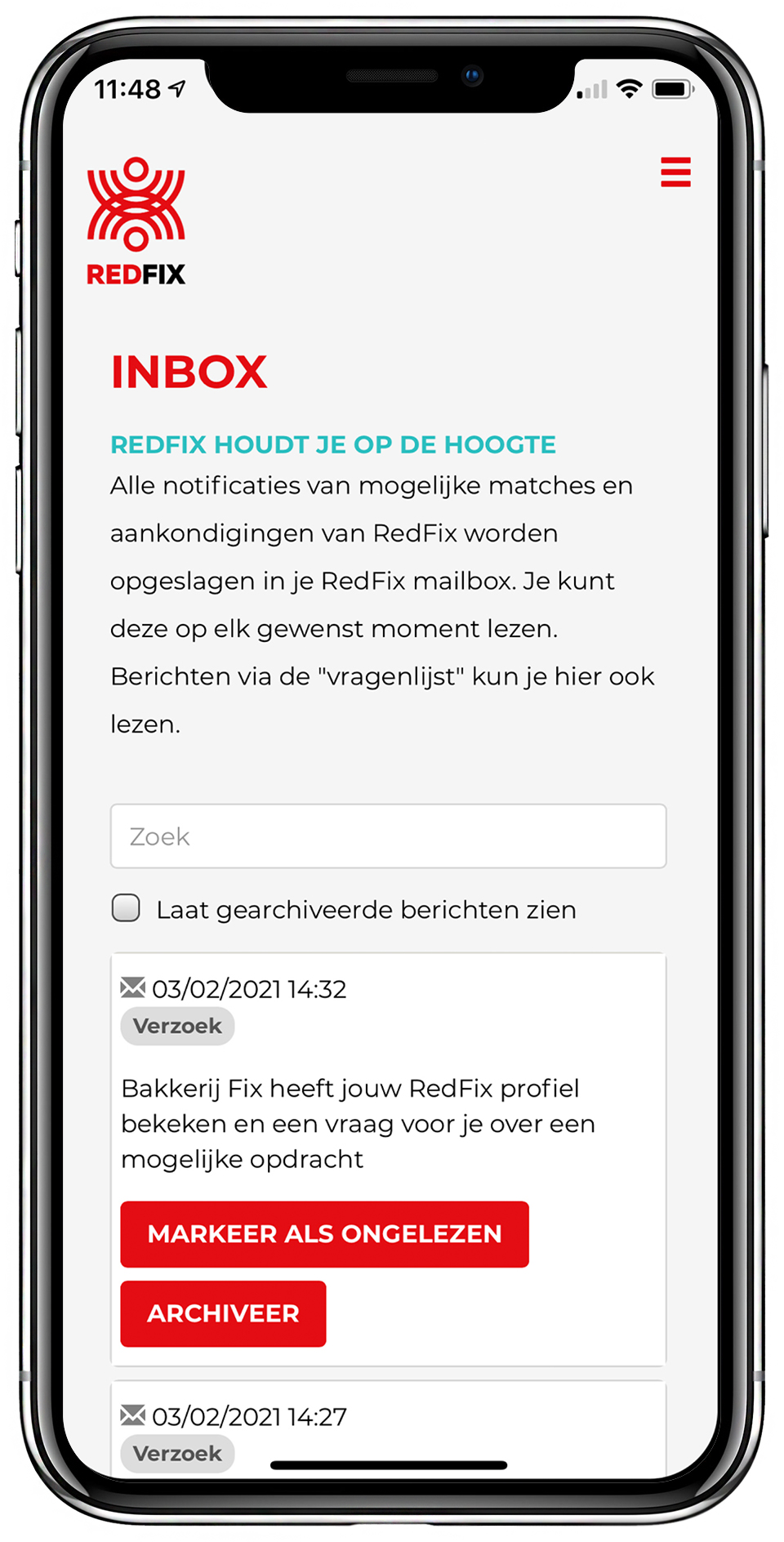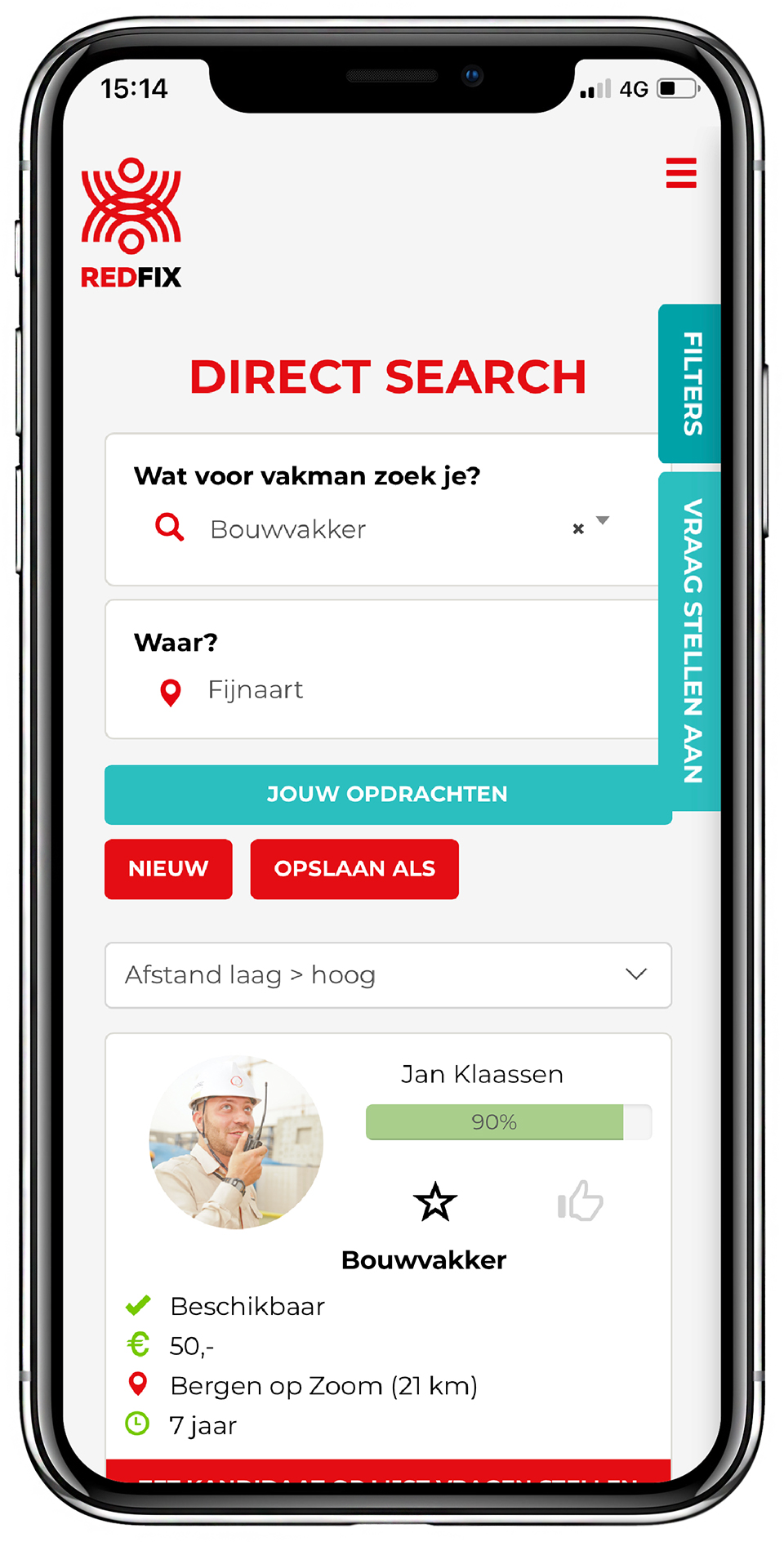 Ons systeem heeft de juiste vakmensen aan jou voorgesteld. Nu is het aan jou als bedrijf om te beslissen met welke kandidaten je contact op wilt nemen. Dit kan direct via telefoon, e-mail of via het RedFix systeem!